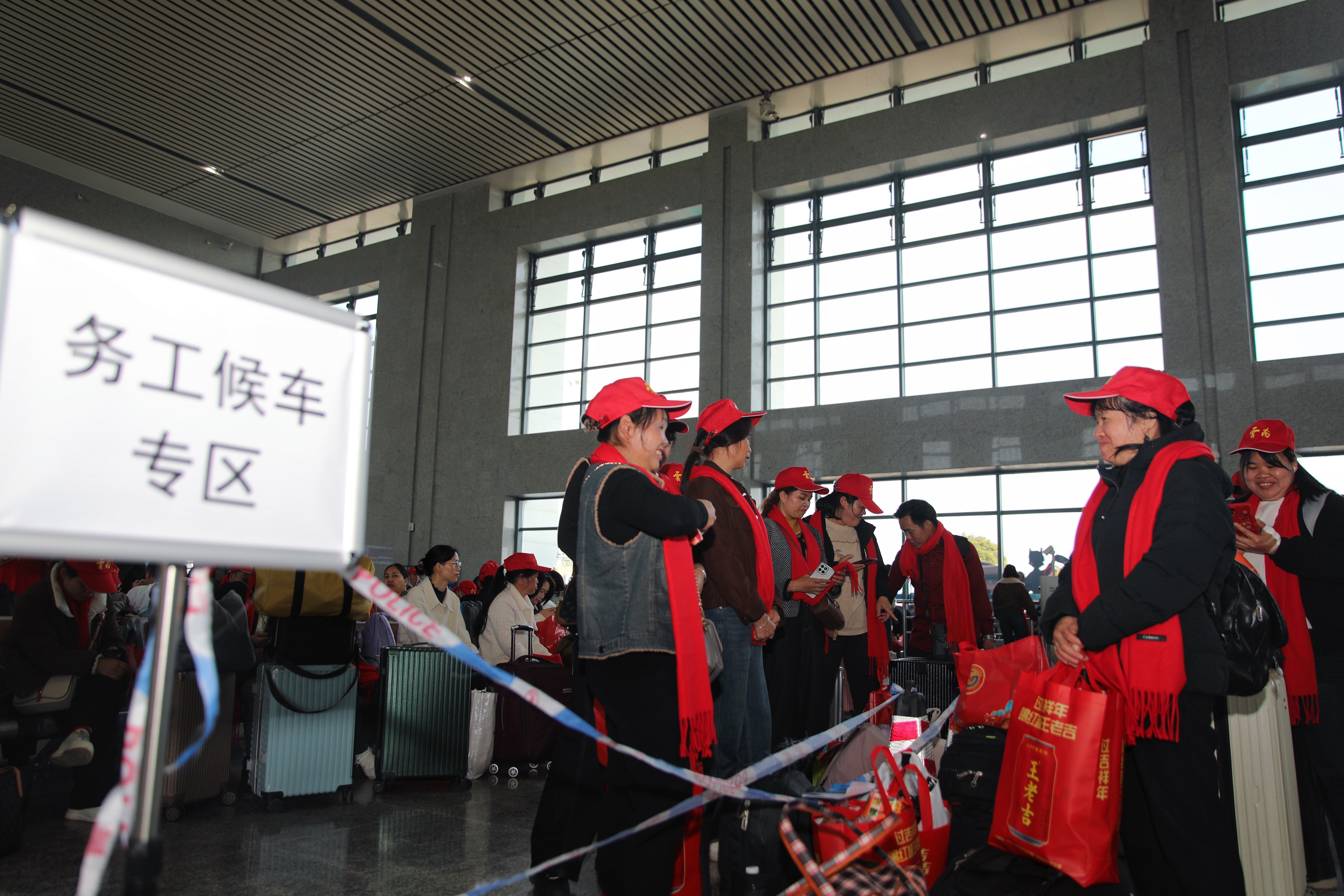 “曲靖市作为务工人口输出地,每年有50万以上的人员到省外务工,为确保务工团体顺利出行,车站专门设立了专用候车区和爱心服务台,并安排专人为务工人员提供车厢引导、行李捆扎等服务,保证务工人员出行方便顺畅。”国铁昆明局曲靖站副站长代兴洲介绍道。