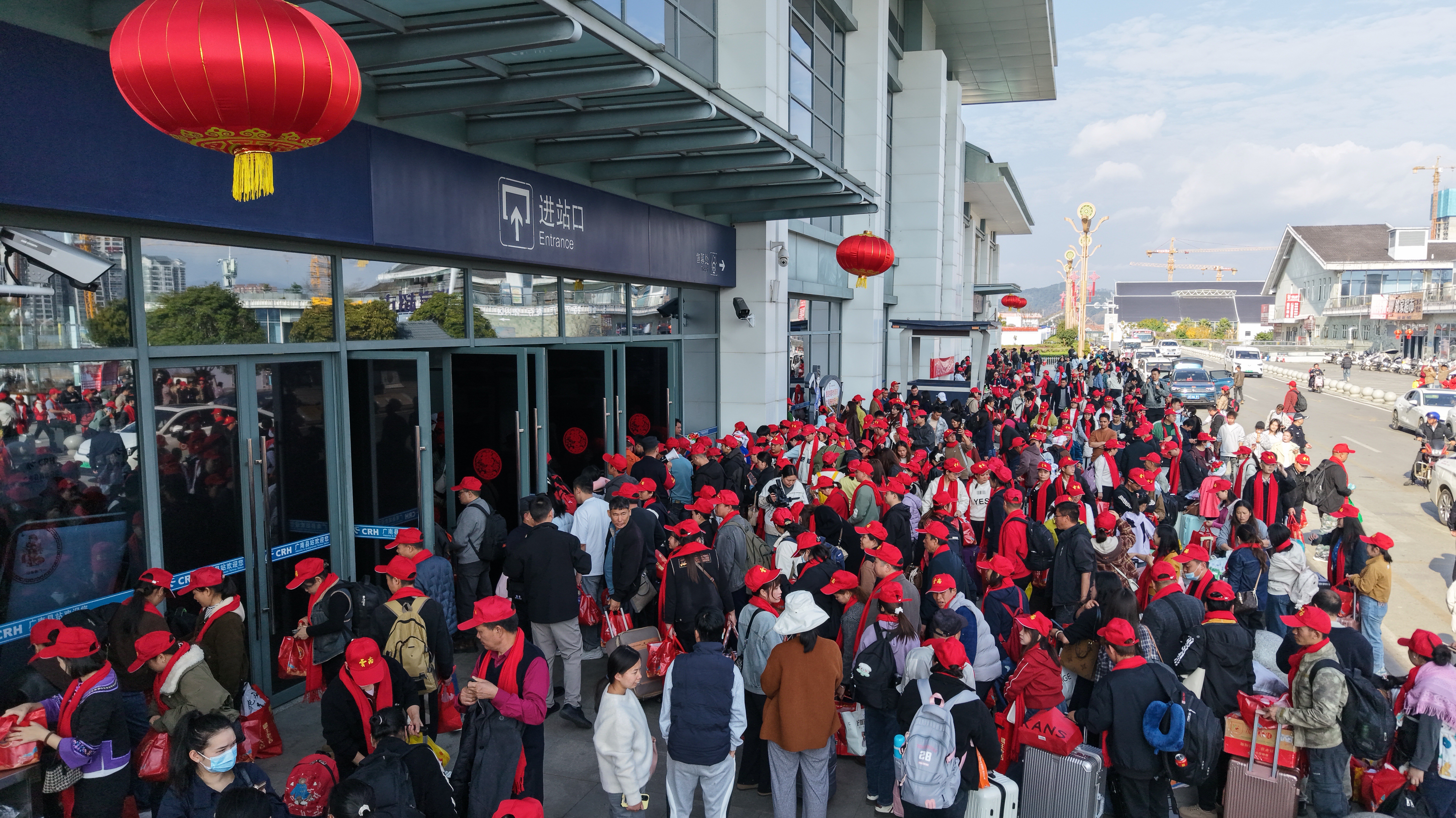 2月24日10时53分,搭载560余名务工人员的D3816次列车缓缓驶出文山壮族苗族自治州广南县站,奔赴1000公里外的广州返岗务工。30分钟后,曲靖市也有530余名务工人员乘坐Z288次列车前往宁波、绍兴等城市,为新一年的拼搏征程按下“启动键”。