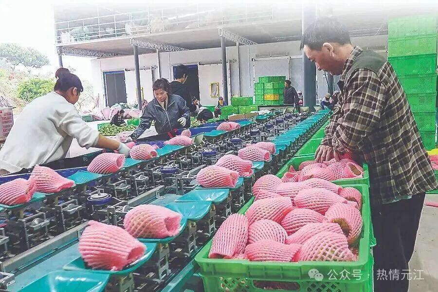 在元江县农润农业科技开发有限公司分拣车间,释迦果通过机器称重分拣后进行分级,确保了产品品质。