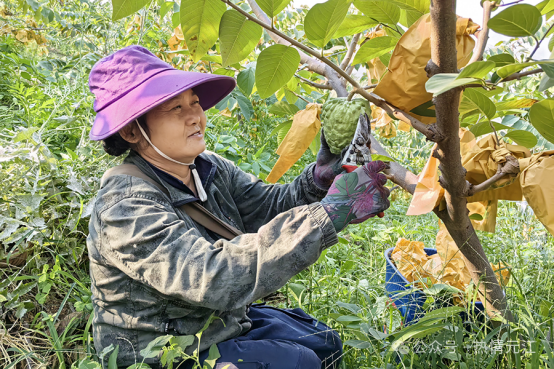 “释迦果从授粉到成熟需120—140天,我们可以通过授粉时间反推成熟期,一棵树结多少果、什么时候可采摘都是自己说了算。”合作社成员杨喜云如今已是掌握核心种植技术的老师傅,从2018年起,她一边流转20余亩土地和父母一起种植释迦果,一边在元江县农润农业科技开发有限公司指导授粉工人,除了自家地里的卖果收入,每天还有150元的工资性收入,日子越过越红火。