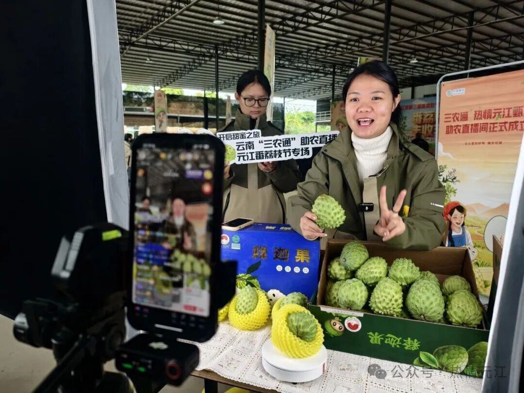 自2023年起,每年12月元江县都要举办番荔枝节。业内专家、采购商、新型农业经营主体等齐聚一堂,携手深耕种植、加工、销售全链条,全方位提升元江番荔枝区域品牌形象。除此之外,元江县还积极构建“节会+新媒体+线下拓展”立体传播体系,举办品牌推介会、采摘体验活动,打造产业IP;联动主流媒体、抖音等新媒体平台,讲好石漠化治理与“甜蜜产业”的故事;组织参加农博会、国际博览会和产销对接会,布局电商直播渠道,同时建成700亩出口基地并实现首次出口,推动“元江释迦果”走出云南、走向世界。