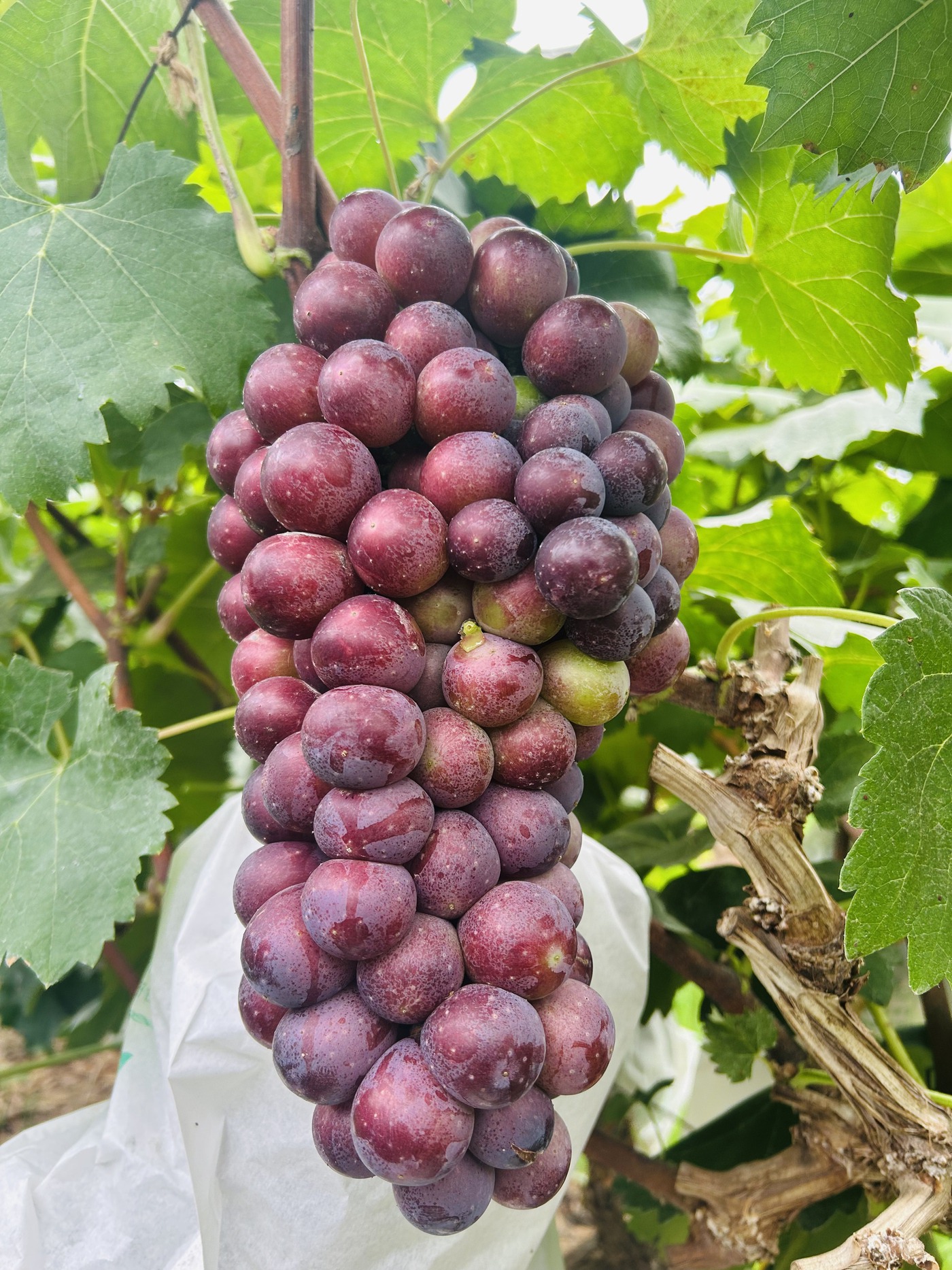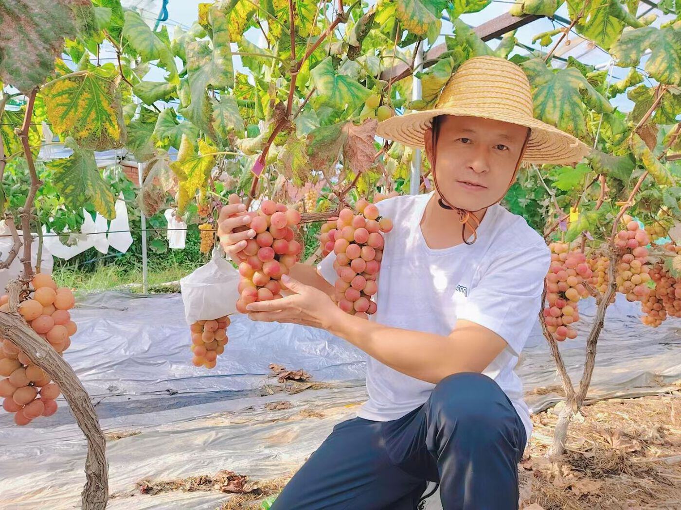 走进葡萄大棚,映入眼帘的是现代化的种植设施:喷灌设备均匀布设,温湿度实时监控,地膜有效防涝,果粒晶莹饱满、糖度显著提升。周绍良坚持绿色种植理念,采用物理防虫、科学疏果等方式,不催熟、不打“激素”,确保葡萄达到绿色无公害标准。正是这种对品质的坚守,让他的葡萄赢得了市场口碑,也带动了周边群众一同发展。