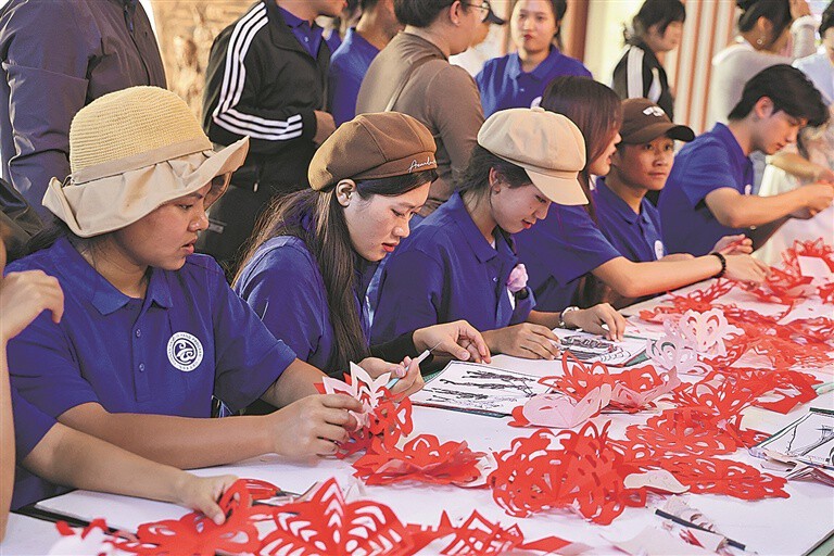 体验傣族剪纸。