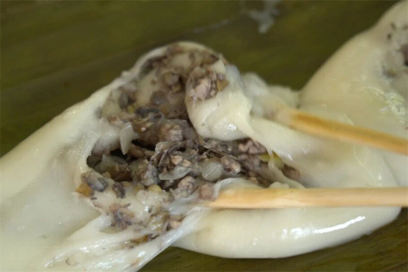 推荐理由:壮乡“马背上的干粮”。外形如古人背负的褡裢,选用本地优质糯米,经浸泡、吊浆、揉捏成光滑面团,取新鲜芭蕉叶洗净、抹油,将面团揉搓成型、中间根据个人喜好加入不同馅料、置于叶两端,对折包裹成形如褡裢,上锅蒸熟。既有糯米的软糯、芭蕉叶的清香、又饱含馅料的醇厚。它曾是赶圩、远行必备,如今是萦绕在壮家儿女心头的乡愁符号。