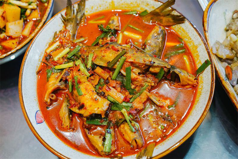 推荐理由:丘北淡水河湖中自然生长的鲜鱼,用盐巴、酱油、酸醋、黄酒腌制后用油炸,炸至两面金黄时,放入丘北辣椒、加上当地的土酱,用小火慢熬30分钟左右,一道色香味俱全的鲜辣酱香鱼让人垂涎欲滴。