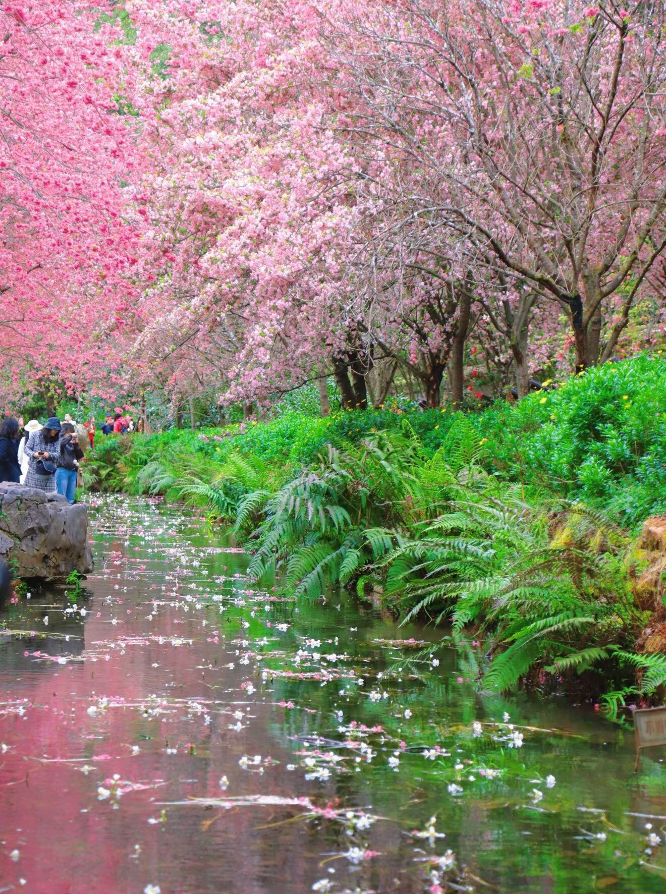 如果你偏爱小众秘境,在丰泽源植物园里,洁白的海菜花飘在琉璃色的水面上,樱花花瓣随风飘落,铺成一条流动的粉色花河。春光不止在枝头,更在斗南花市“论斤卖”——你可以到亚洲最大鲜切花市场里,抱一束鲜花,把春天带回家。