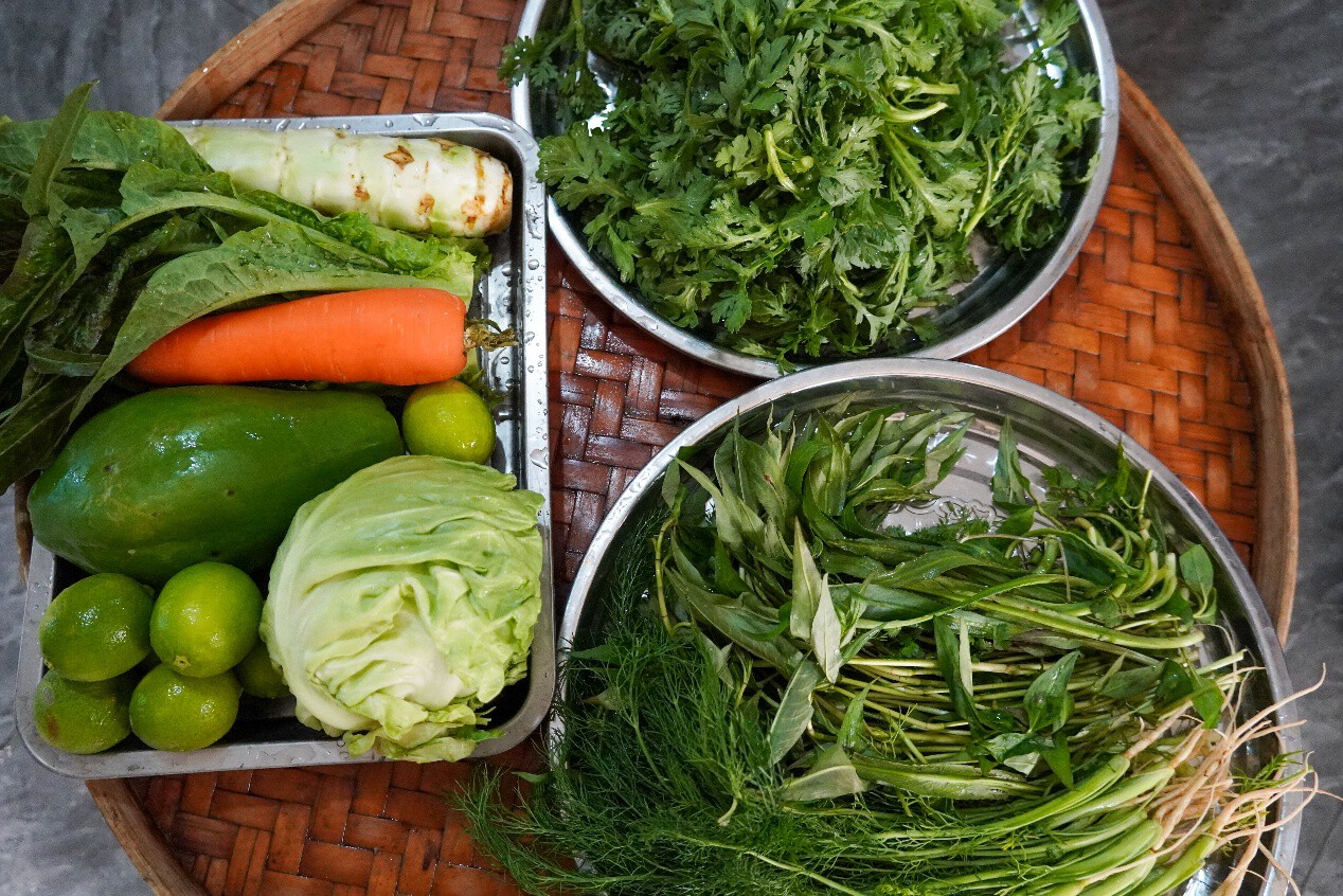 新鲜的青笋、木瓜、胡萝卜、蒿子叶、包白菜切细