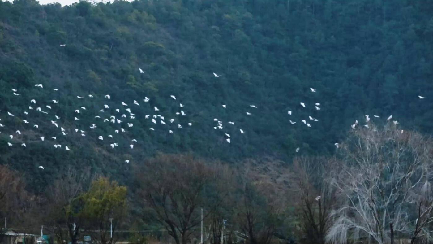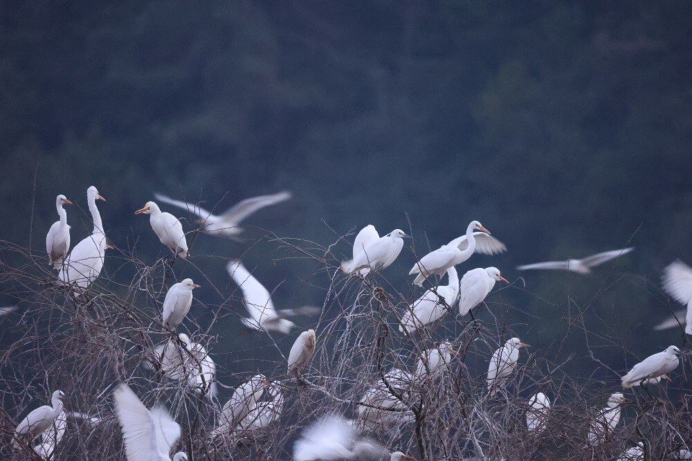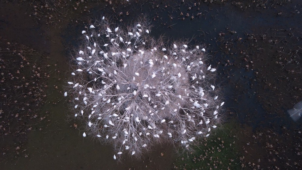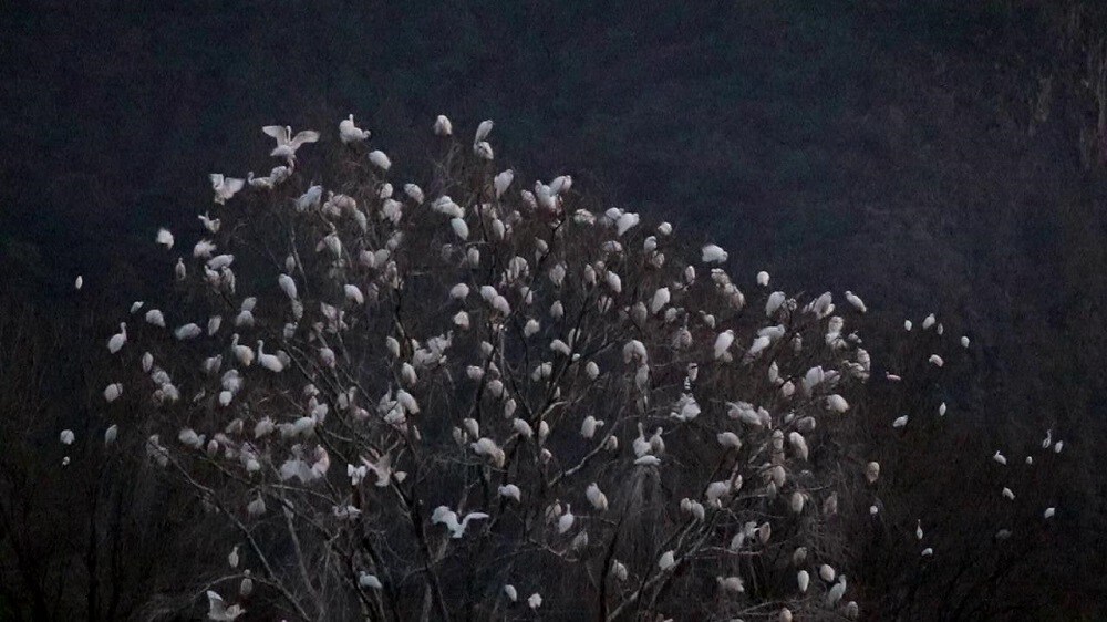 施甸县野鸭湖上演百鸟归巢一树“银花”景观