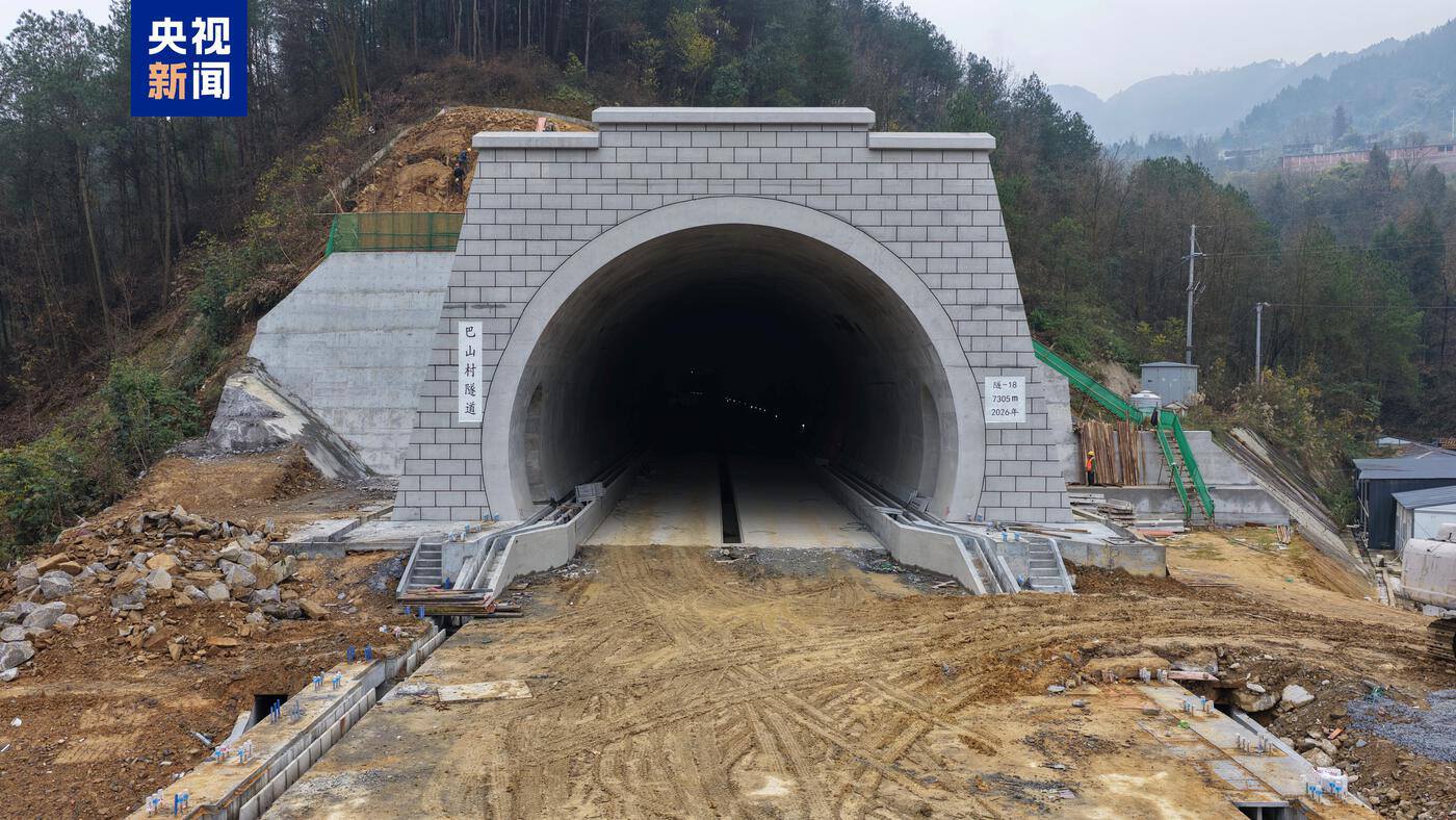 2026年1月4日,新建重庆至万州高速铁路重难点工程—巴山村隧道安全顺利贯通,标志着渝万高铁建设取得重大突破,为全线按期通车奠定了坚实基础。