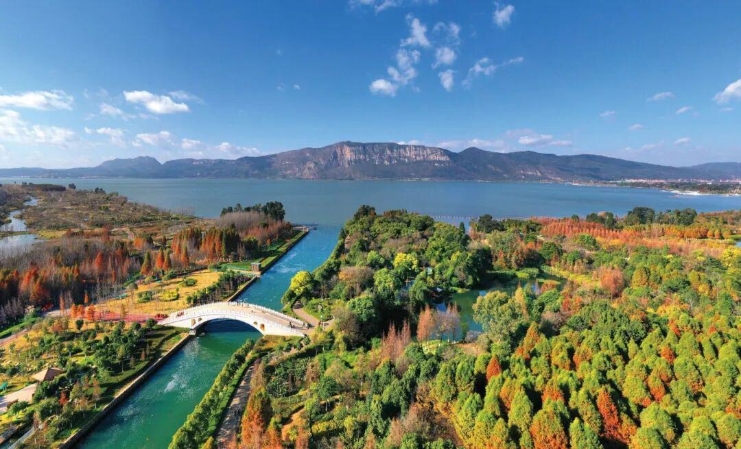 从宝丰半岛湿地可近览滇池远眺西山。周密 摄