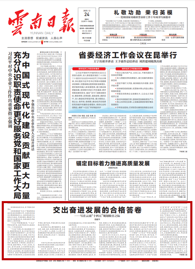 《云南日报》刊发南耀平文章:交出奋进发展的合格答卷