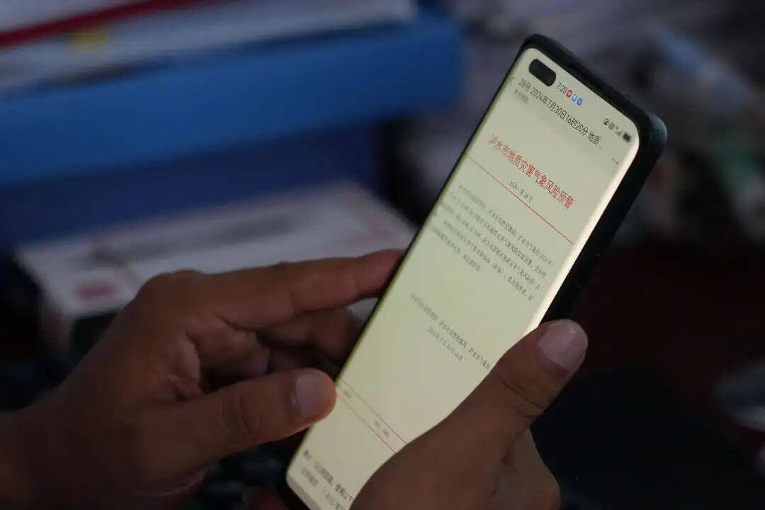 怒江州泸水市上江镇大练地街道大练地村蛮蚌村民小组,地质灾害监测员时刻关注天气预警。图源:泸水时讯