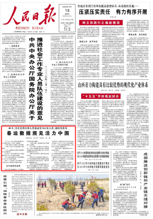 出行选择的迭代、团圆方式的多样、旅途体验的暖心……2026年春运,折射出交通强国的升级之路。流动的中国,稳稳托举起14亿多人对美好生活的向往。