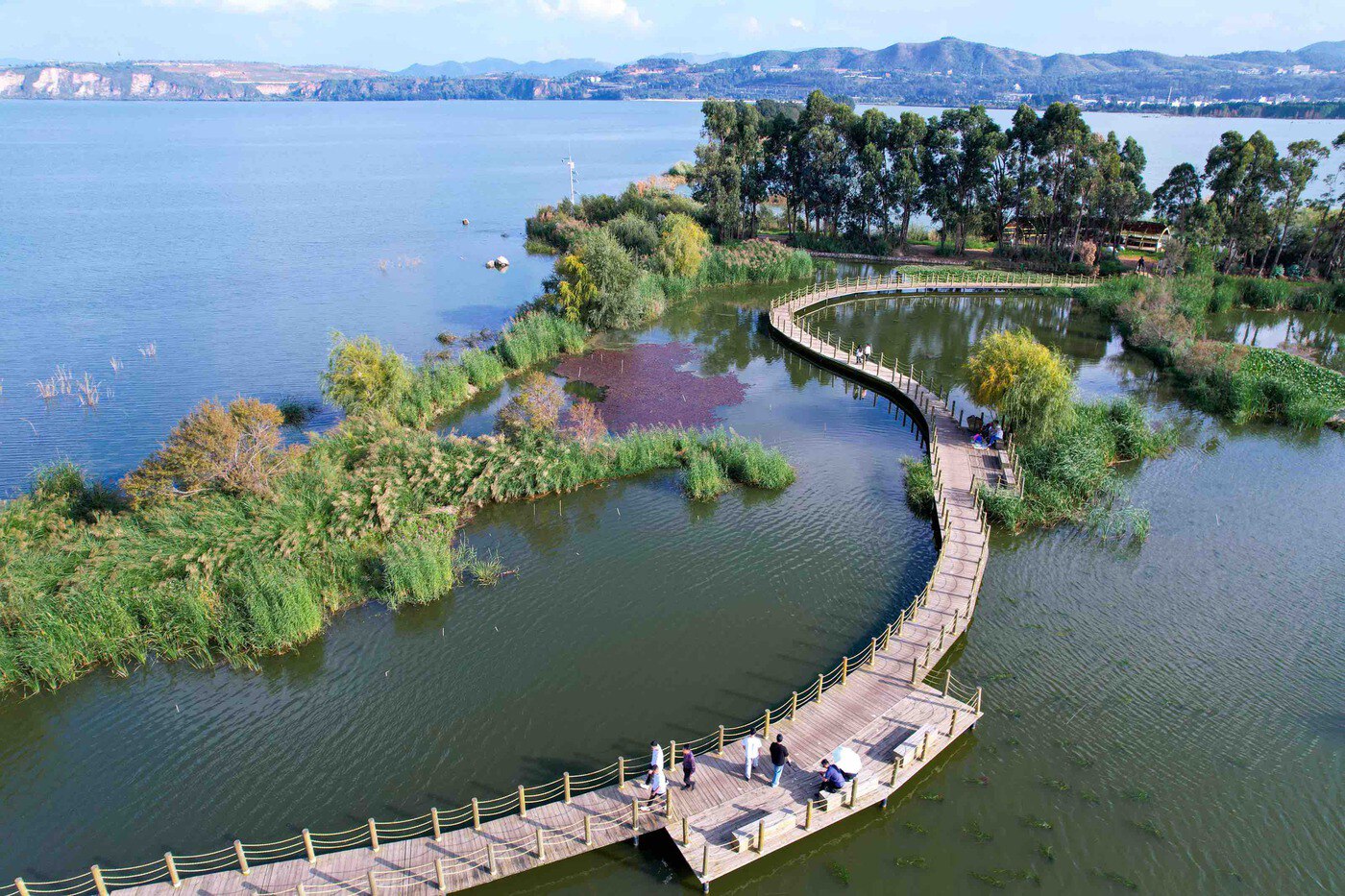 南滇池国家湿地公园水草丰茂,景色宜人。