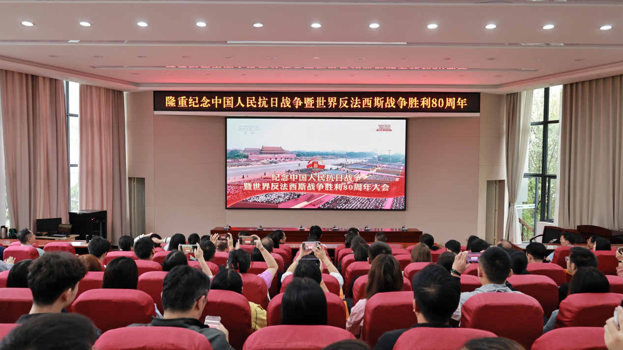 师生们认真聆听了中共中央总书记、国家主席、中央军委主席习近平发表的重要讲话,随后观看了盛大的阅兵仪式。