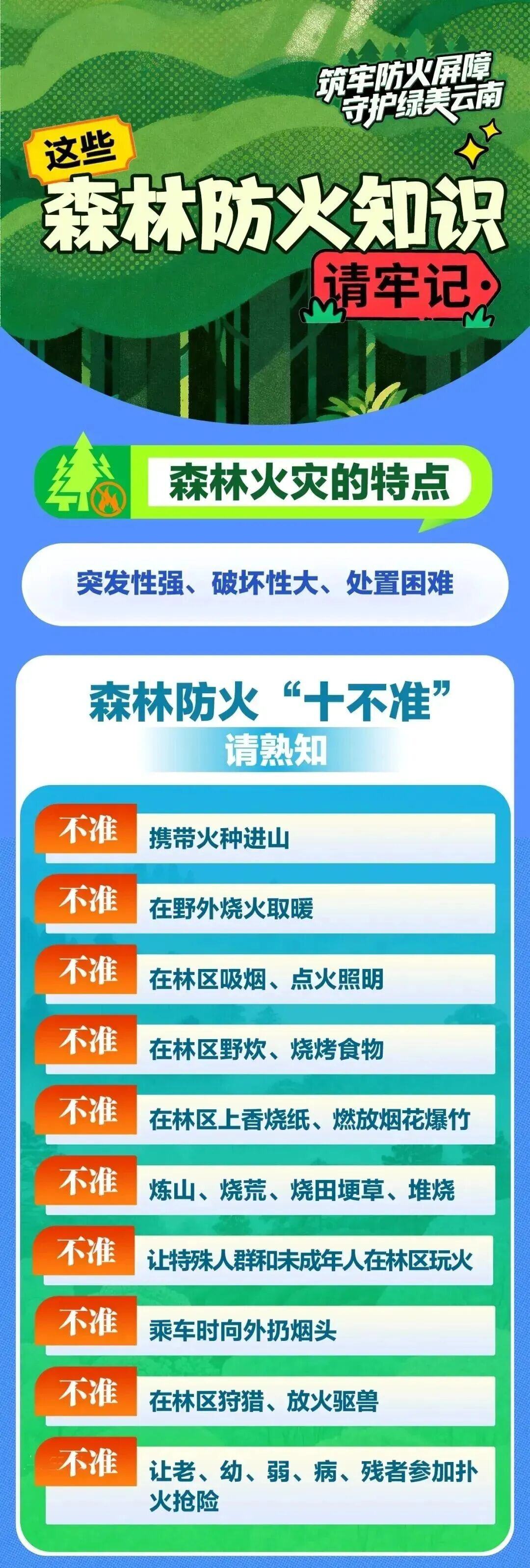 近日,文山州林业和草原局通过微信公众号“文山林草”平台发布《森林防火,这些知识务必牢记》,号召市民学习森林草原防火知识。