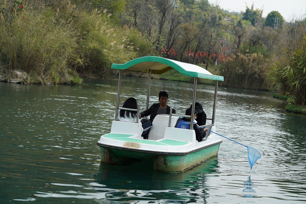 尝过美食,游客们或漫步在青山绿水间,或乘船泛舟,与家人、朋友一同感受自然美景。“今天是周末,我带着孩子来这里玩,感觉公园的变化非常大。我们划船、喝咖啡、吃比萨,感觉挺惬意。”游客张庆香高兴地说。