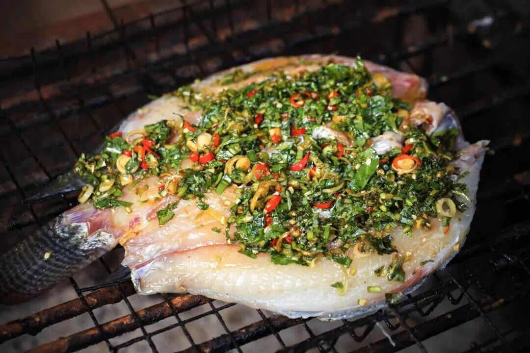 竹夹炭烤至外皮焦酥、鱼肉雪白
