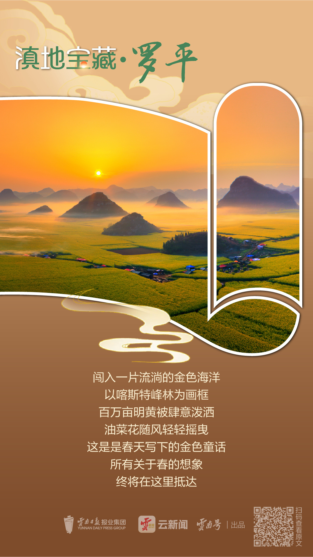 罗平的故事,始于一个寄托和平愿景的名字,成于一片得天独厚的山河。它既有春天里席卷世界的金色狂想,也有四季中默默沉淀的物华天宝。更为可贵的是,生活于此的人们,懂得如何与这片土地和谐共生,将自然的壮美转化为可持续的财富,将悠然的山水陶冶成可栖居的诗意。