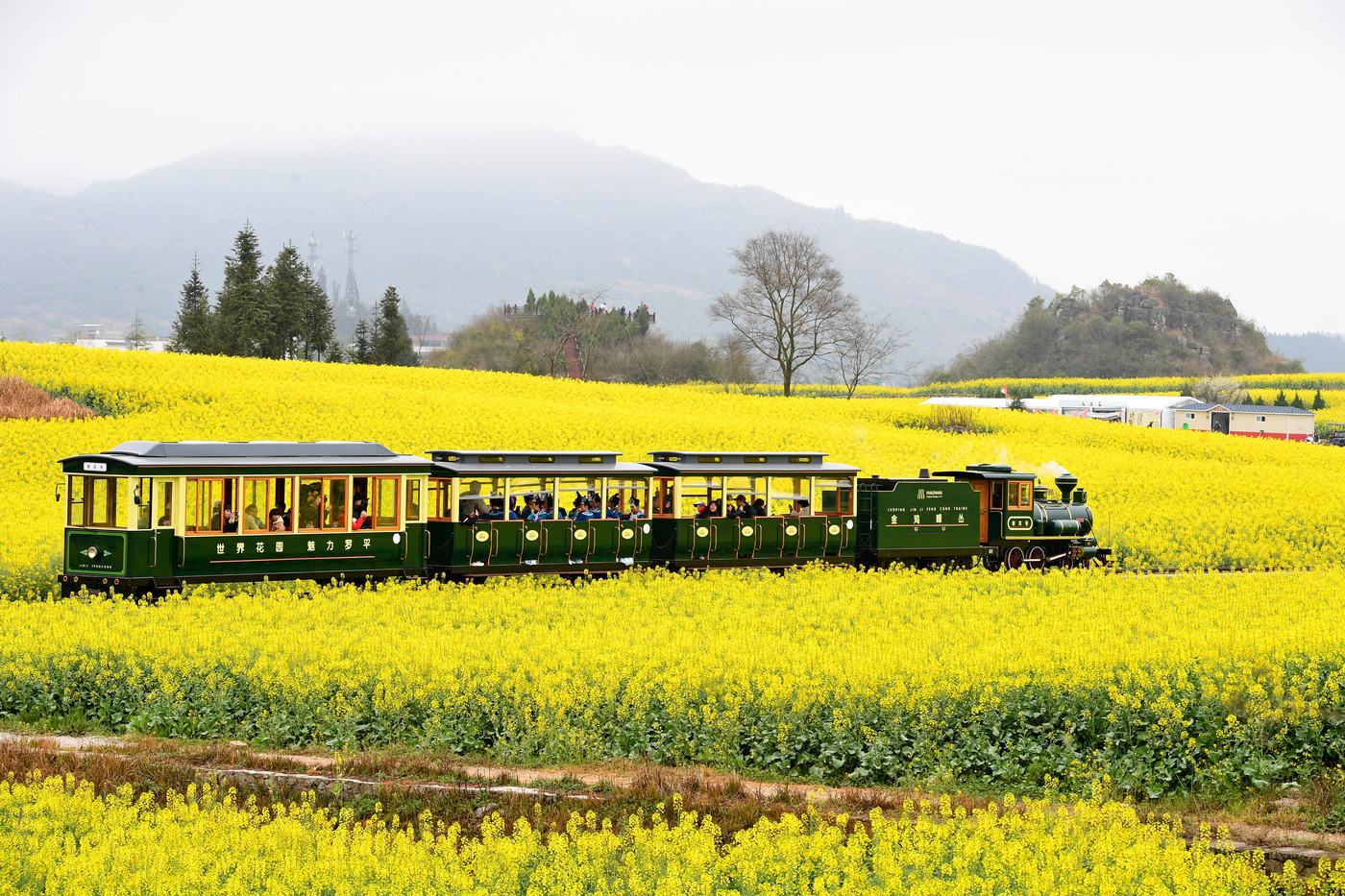 在金鸡峰丛,一座座青翠的锥状山峰,如同大海中浮起的岛屿,被金色的海浪温柔环抱。晨雾起时,峰林若隐若现,花田朦胧如梦境;日出时分,万道霞光为层层叠叠的花浪镀上金边,壮阔与柔美并存。得益于罗平坝子肥沃的土壤与适宜的气候,为冬油菜提供了绝佳的生长环境,使得这份金色的烂漫,年年如期而至。