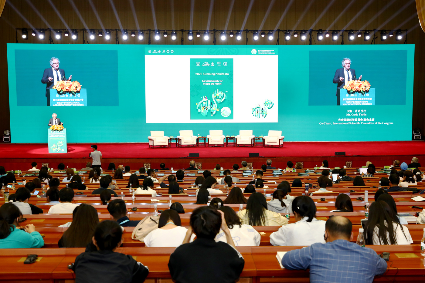 通过深入地交流探讨,与会专家、代表在政策支持、行动计划、社区参与、技术创新等关键议题上达成了广泛共识,明确了行动方向与重点任务。经参会代表举手表决通过,大会国际科学委员会主席卡洛·法达先生代表大会,正式发布《2025昆明宣言:农业生物多样性助力更有效的全球食品系统》,阐明了农业生物多样性如何成为应对全球性互联挑战的跨领域解决方案,指出金融与经济增长、营养、气候变化、生物多样性与环境、性别与平等、保护与管理是农业生物多样性惠及人类和地球的六大关键领域,提出了行动路径和计划,明确农业生物多样性在应对粮食危机与气候变化中的战略地位。