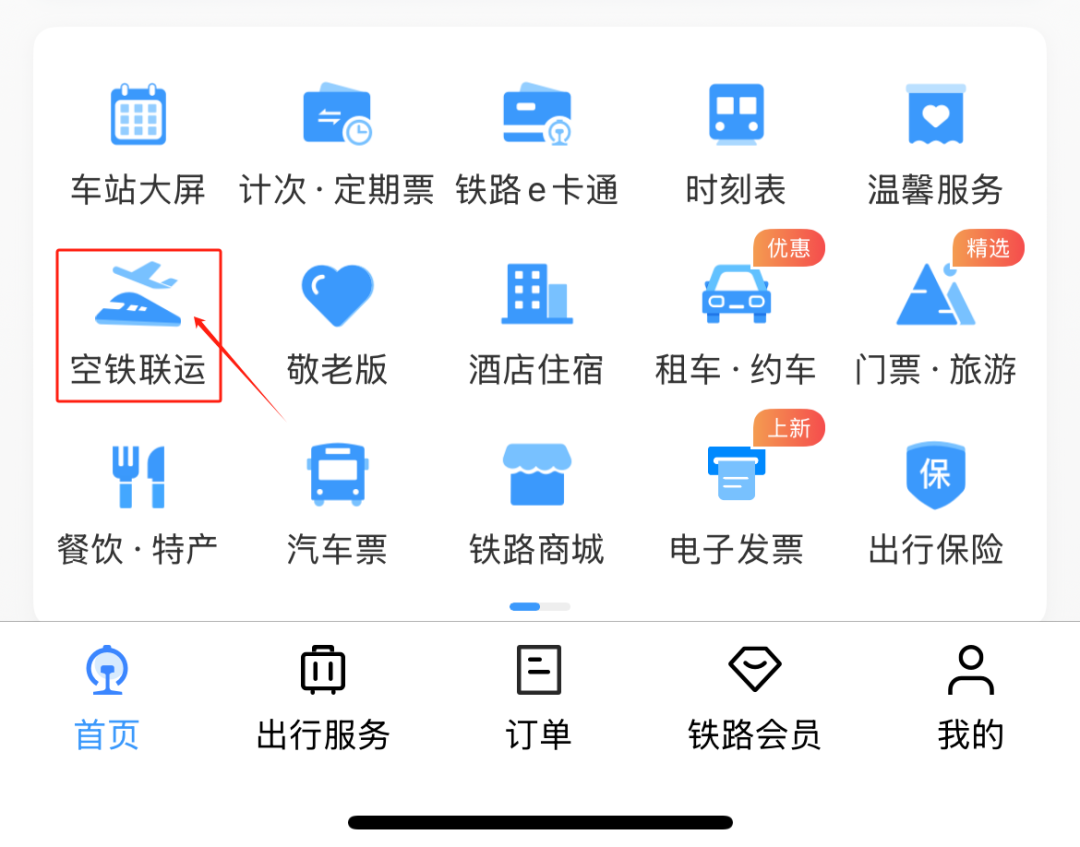 进入“12306”APP点击“空铁联运”