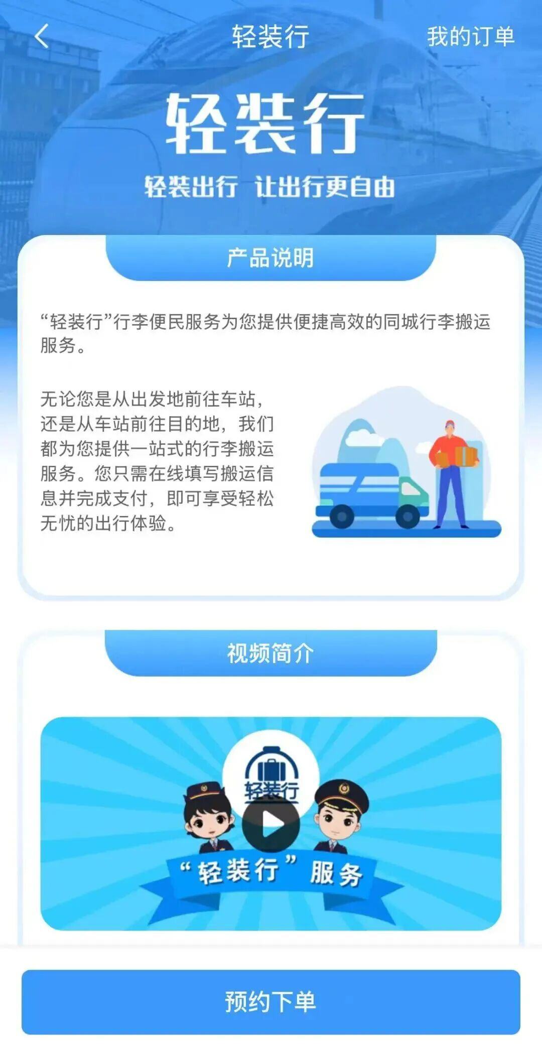 已购车票且在同城距离车站35公里内的旅客,在开车前48小时至4小时,或列车到站前24小时至1小时,可通过铁路12306App、微信小程序的“轻装行”服务进行预约。