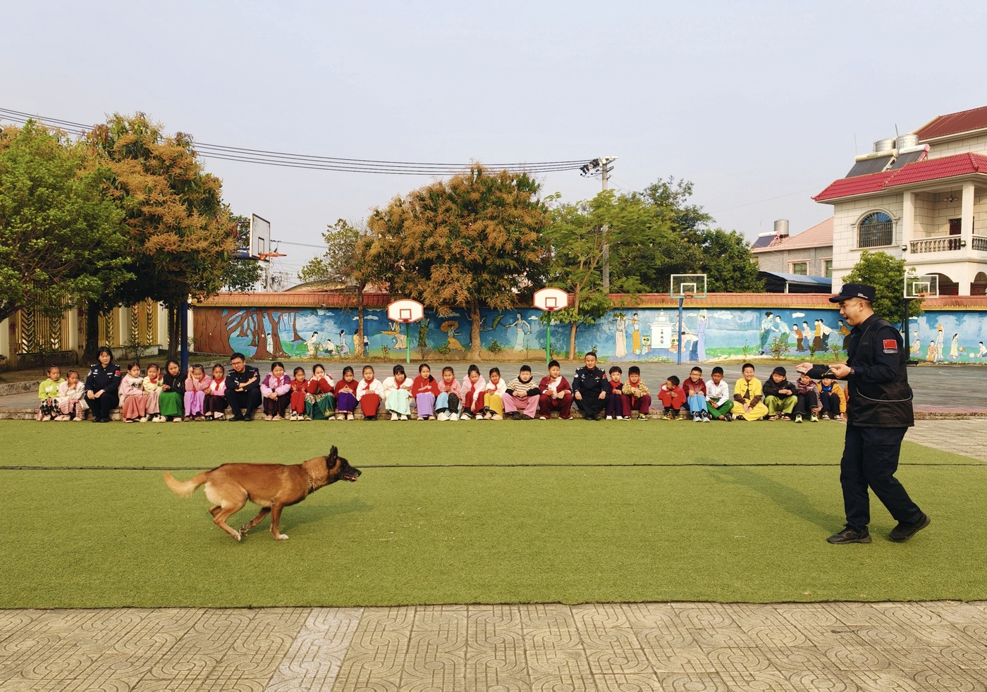课堂不止于教室。操场上,一场警犬服从与搜捕训练演示将气氛推向高潮。警犬在指令下迅捷、精准地完成动作,引来阵阵赞叹。在训导员的安全引导下,孩子们轻轻抚摸警犬,好奇与欣喜洋溢在一张张笑脸上。