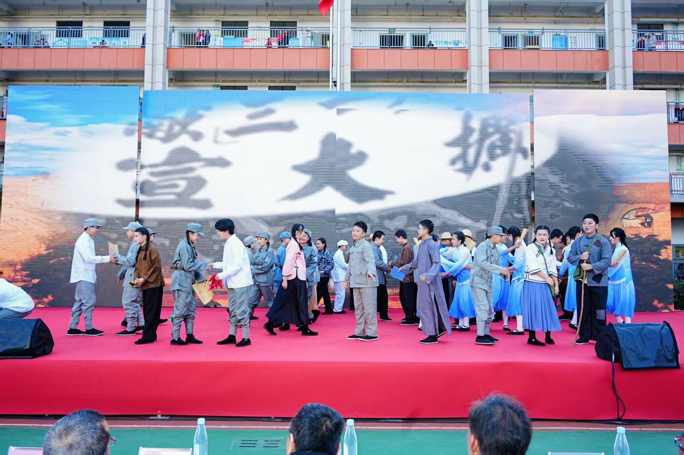 本次活动是学校品牌项目“行走的大中小学寻访昆明文脉‘五站’思政课”的重要组成部分,通过将思政小课堂与社会实践大课堂相融合,并以舞台剧形式进行集中展演。整场活动围绕“回望历史、开创未来”的主线,分为三个篇章,带领师生共同感悟先辈伟绩,延续革命精神。
