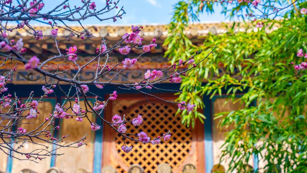 古梅盘踞,暗香浮动,为整座寺庙增添了几分雅致的韵味。