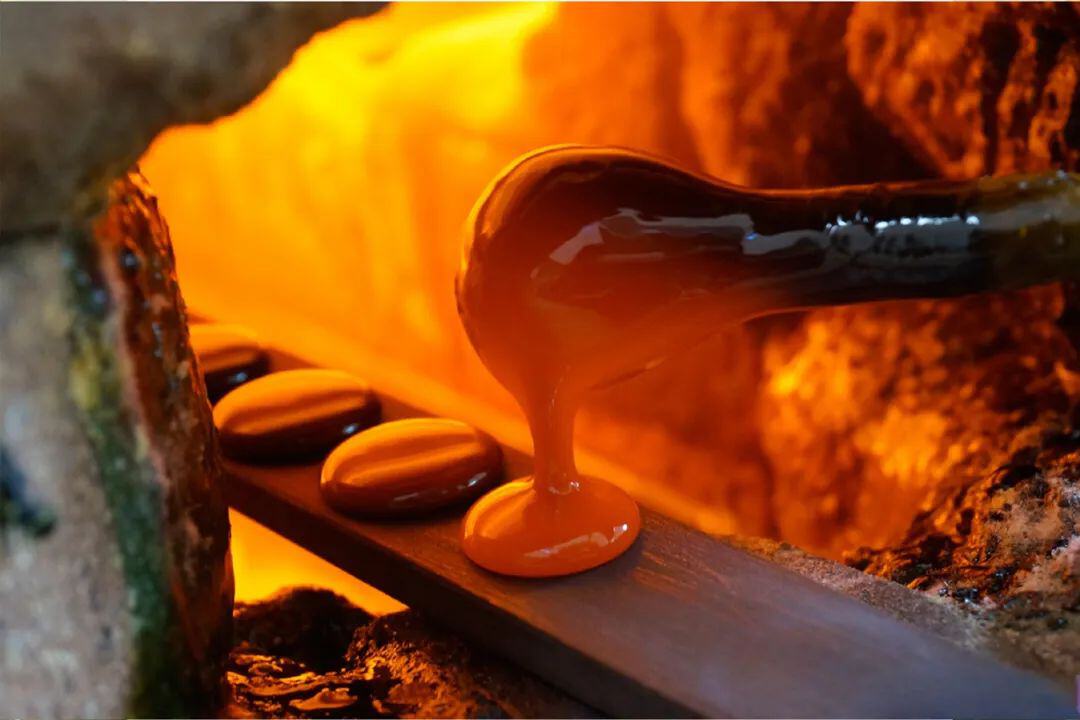 将蘸满的熔浆依次滴在一个铁板上