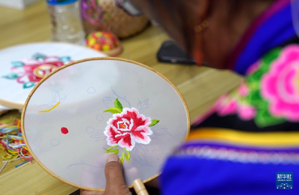 接过少女手中的针线尝试了精美的彝绣