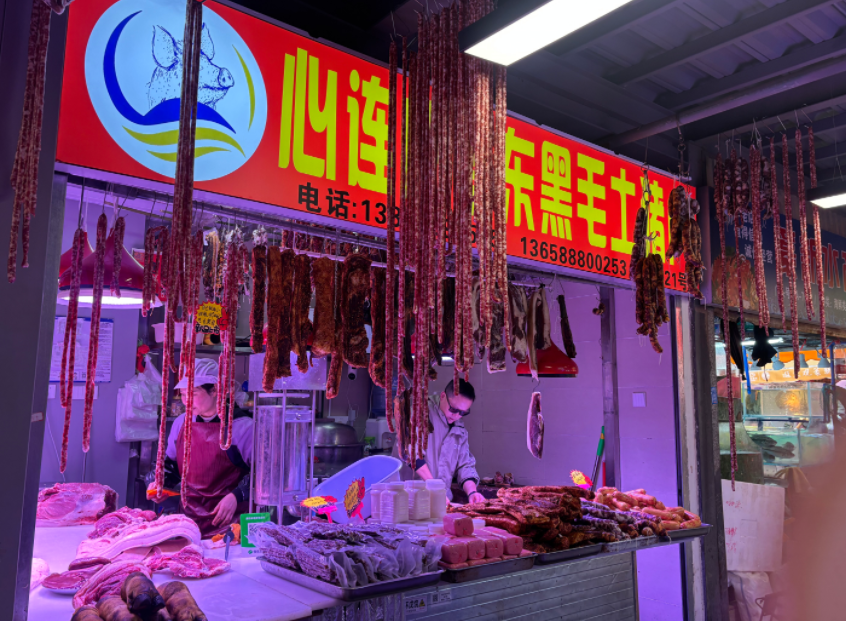 值得注意的是,近年来,越来越多市民在灌制香肠时开始追求更高品质的原料。一家专售土猪肉的摊位老板向记者介绍:“我们家是生态土猪肉,前腿和后腿都是35元一公斤,灌五香肠另加每公斤10元的材料费。虽然单价高于普通猪肉,但仍有不少顾客认准这个味道。“该老板表示,大家觉得用土猪肉做的香肠更地道、肉质更紧实、香味更醇厚,吃起来也更放心。这反映出消费升级的趋势,人们不再仅仅满足于有得吃,更追求吃得好、吃得健康。