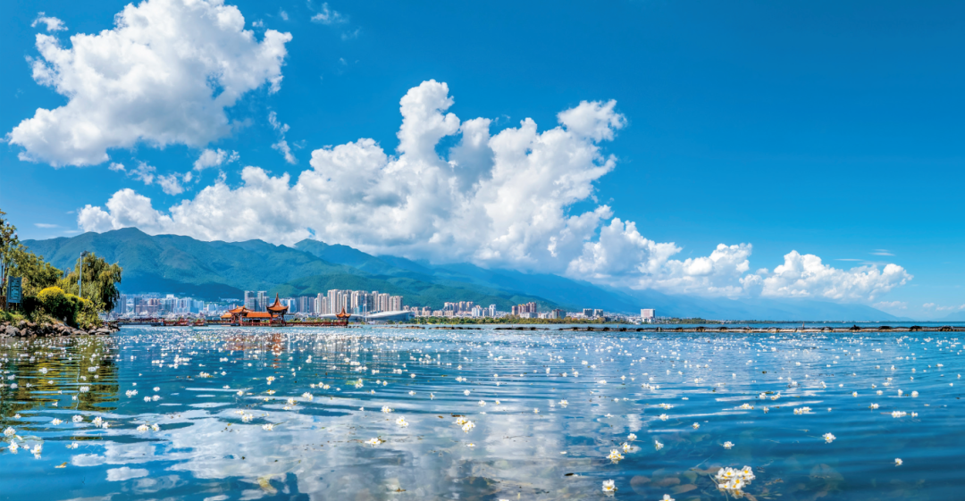 “十四五”期间,云南省将重点高原湖泊保护治理作为压倒性任务,实施综合治理、系统治理、源头治理,一体推进“三治一改善”,强化河湖岸线空间管控,推动保护治理从“一湖之治”向“流域之治”再到“全域联治”转变,重点高原湖泊水质保持稳定向好。图为“水质风向标”海菜花在大理洱海连片绽放。杨继培/摄