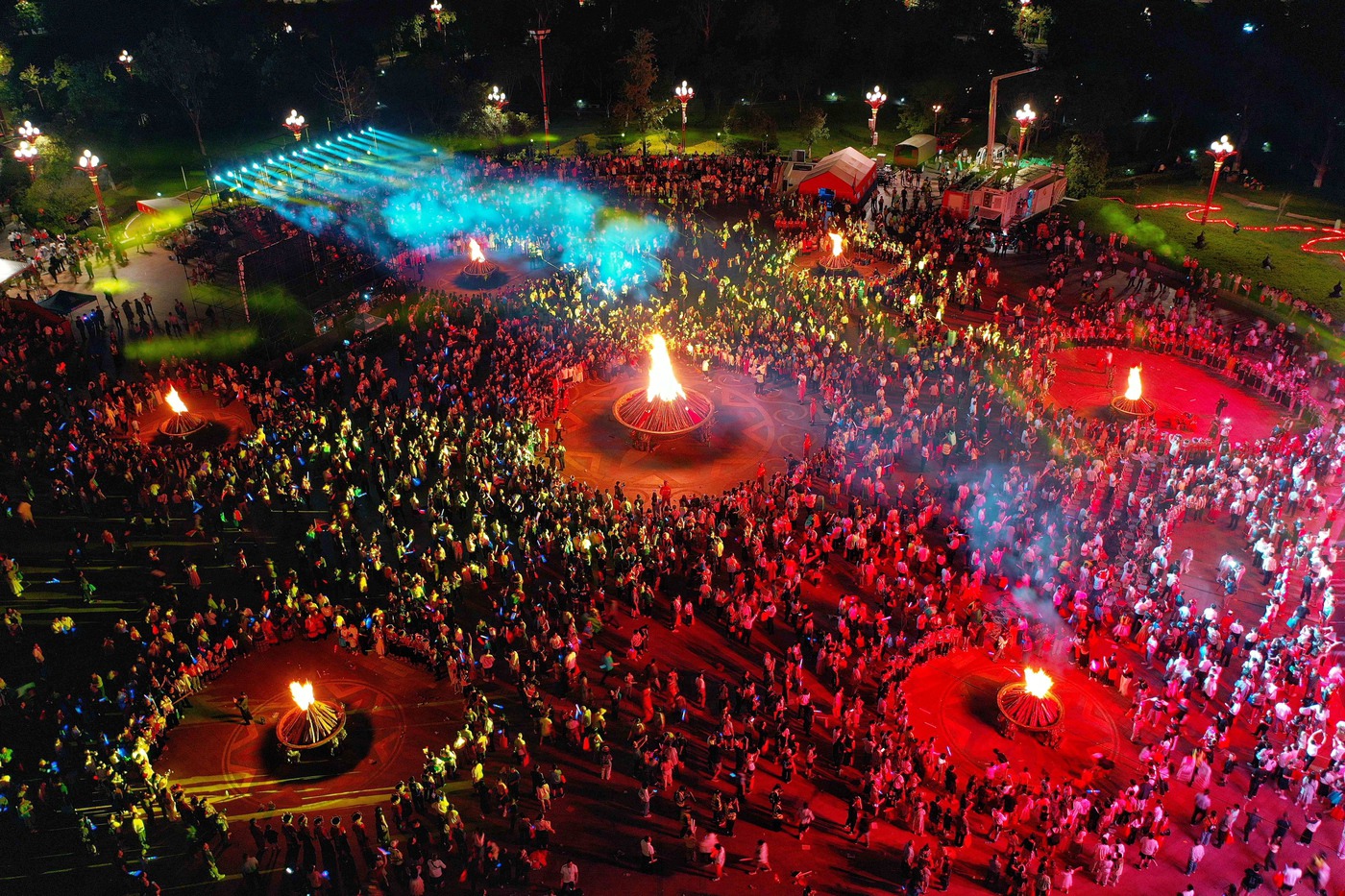 昆明老街在暖黄灯笼下重现“老昆明”的市井风情,汇聚糖画、剪纸等非遗技艺;仅数里之遥,南强街巷则洋溢着现代都会的活力,创意市集与音乐酒吧相映成趣,演绎着传统与现代的和谐交响。楚雄彝人古镇的火塘熊熊燃烧、火堆噼啪作响,欢快的左脚舞展现了彝家儿女的火样热情。