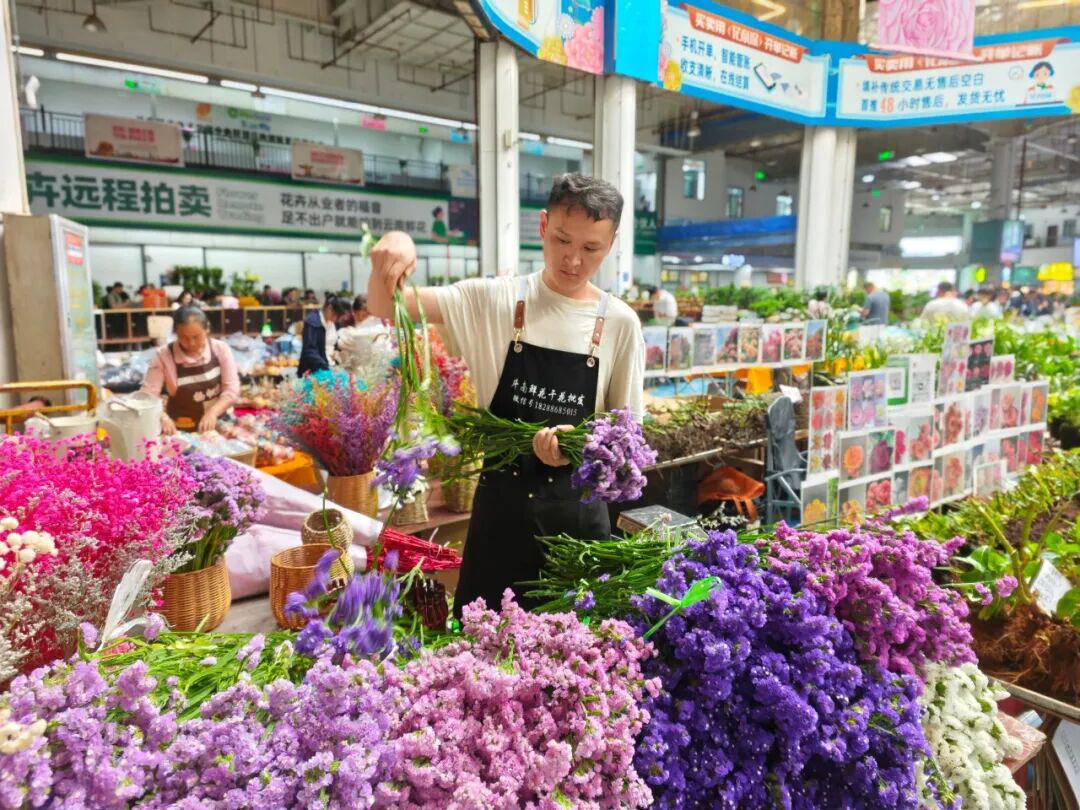 斗南花卉市场每天上市1600多个品种的鲜花。