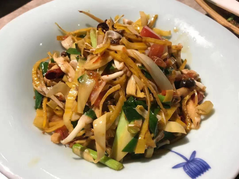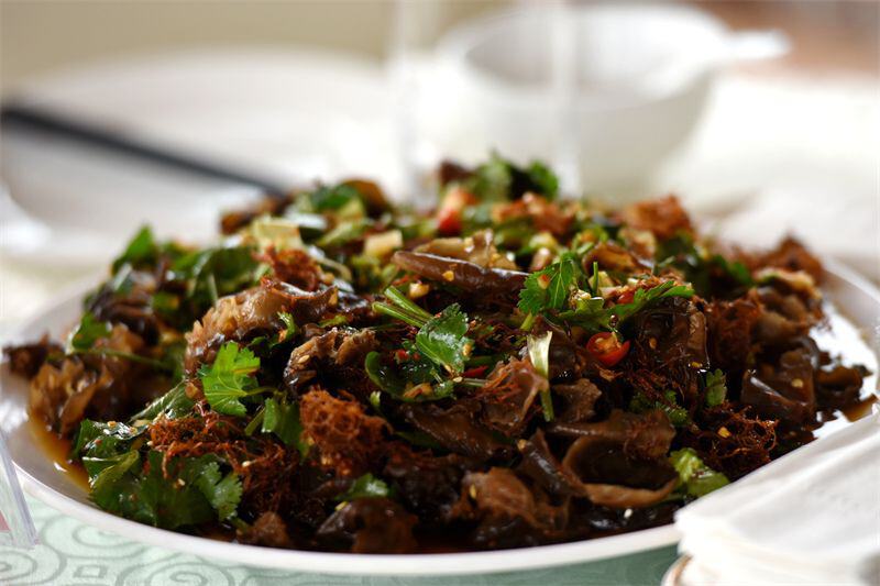 树花:寄生在木柴上的树花,是很有特色的美味。晾晒后的树花先用水发,然后洗净、用开水焯熟,配上鱼腥草,佐以酱油、醋、盐、小米辣、香花生凉拌,一道味觉层次丰富的凉拌树花就完成了,是相当不错的佐餐美味。