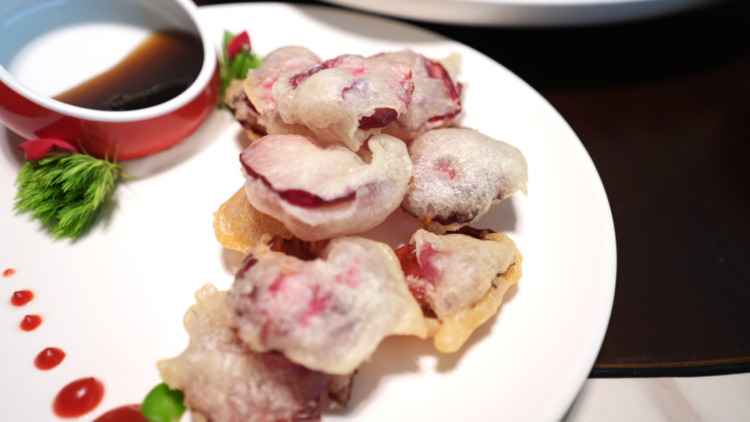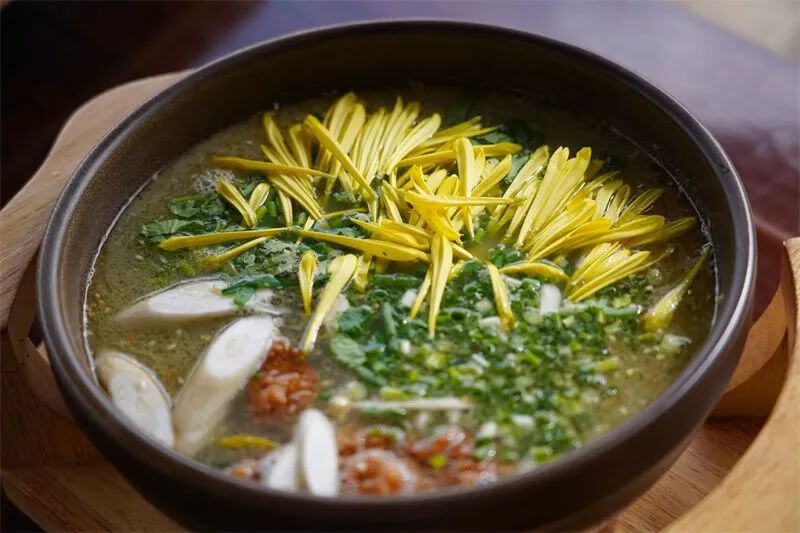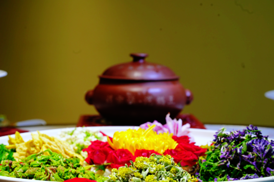 除了家常热炒,鲜花在云南美食中还有更多巧妙的化身。玫瑰花馒头、菊花过桥米线的汤底、茉莉花炒饭,让主食也萦绕着淡淡花香。