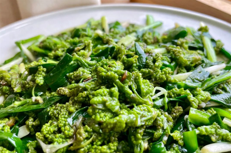 棠梨花:这种遍布山野的白色小花,是云南春季菜市场的明星。焯水去除涩味后,无论是与云南特有的火腿、豆豉同炒,还是与干辣椒爆香,都能激发出其独特的清香,口感柔韧,带着山野的质朴气息,是寻常人家最熟悉的春之味。