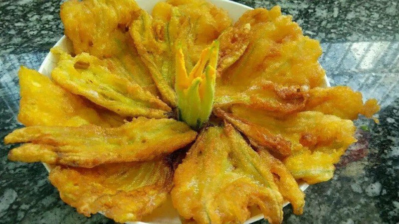 南瓜花:金黄灿烂的南瓜花,是极易获得的田园之味。最经典的吃法是包裹面粉糊油炸,外酥里嫩,满口生香。也可与青椒、番茄同炒,或塞入肉末煮汤,清甜无比,是小孩喜爱的花样美食。