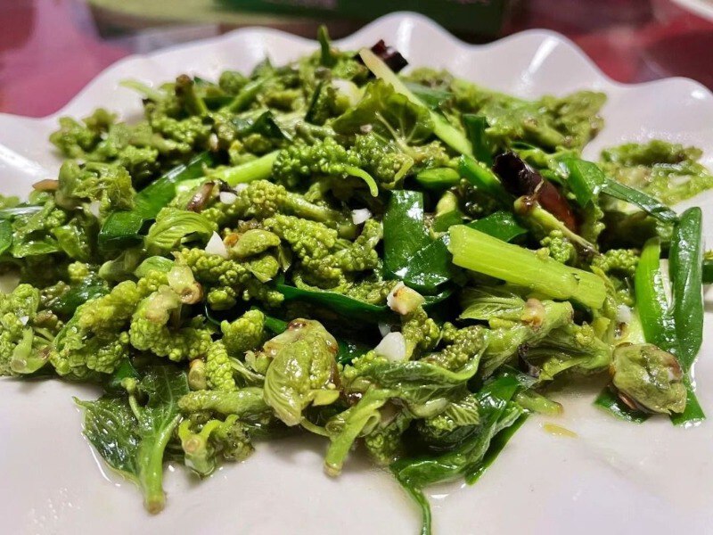 春日田野,油菜花金黄如海,是大地写下的诗篇。鲜嫩的花薹可清炒、凉拌、腌制,亦可入饼,清脆多汁,满是春日的明媚与生机。