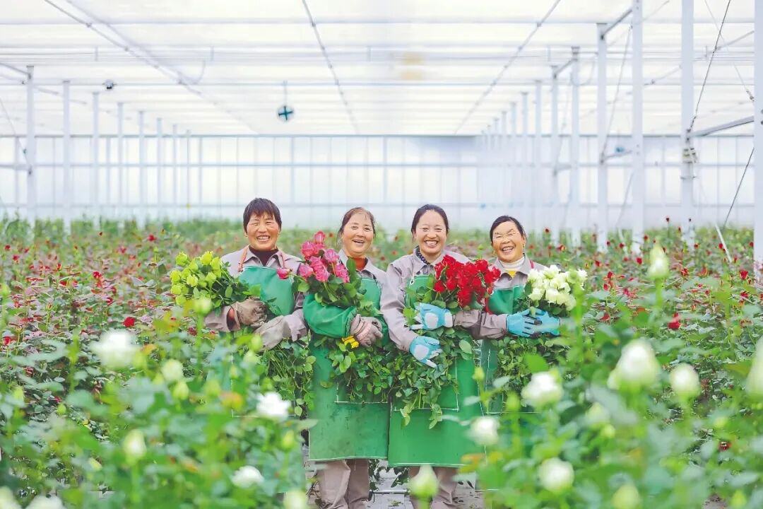 丽江现代花卉产业园内,田间组工人收获芬芳。陈飞、胡妤雅/摄