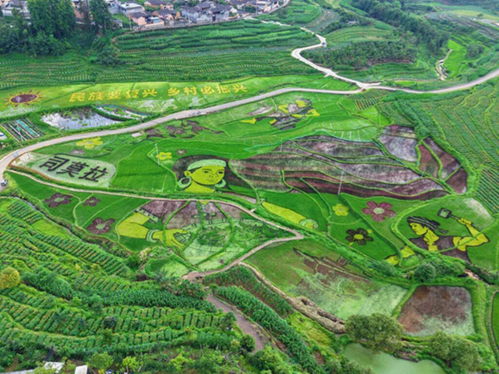 立秋时节,一幅以大地为纸、水稻为墨的巨型稻田写意画,在保山市腾冲市清水镇三家村中寨司莫拉佤族村惊艳亮相。司莫拉村采取“党支部+公司+合作社+农户”的发展模式,将村民的土地整合起来,统一规划和管理,全体村民参与乡村旅游、发展多种业态,昔日贫困的小村庄,如今走上致富路。