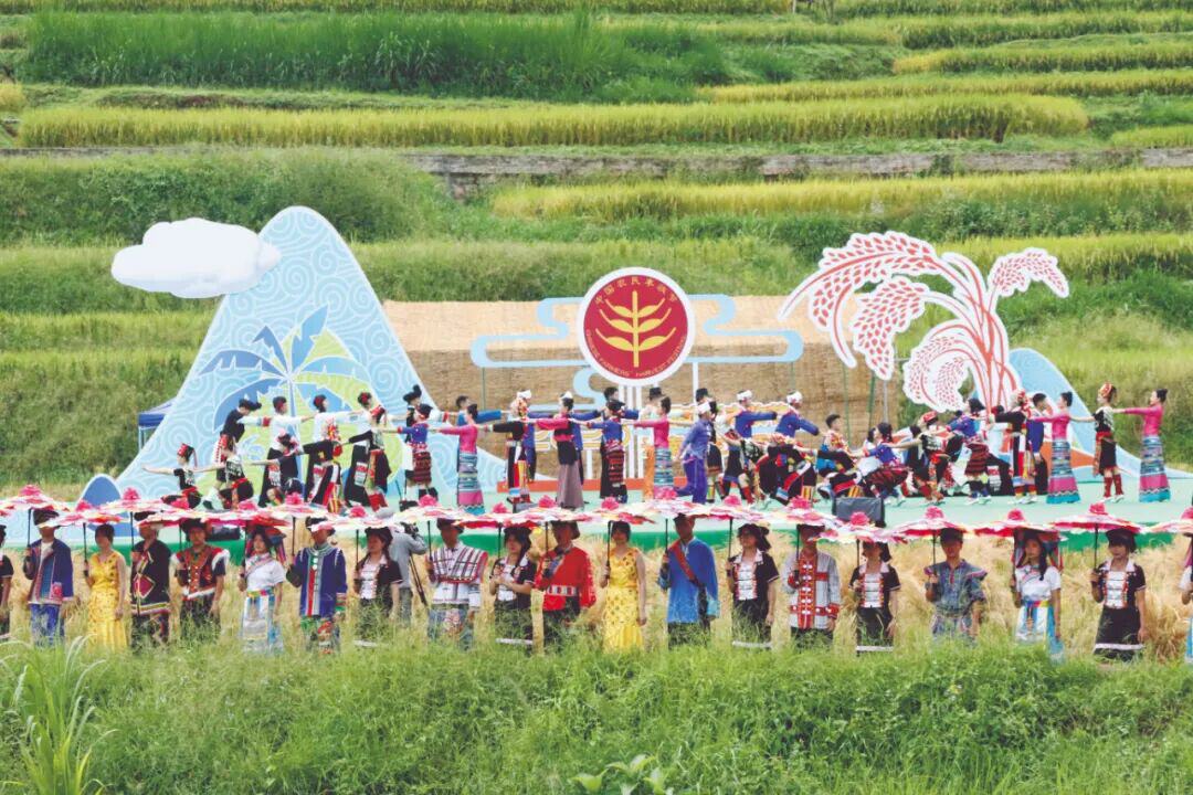 图为2025年中国农民丰收节云南省主场活动上,各族群众身着盛装载歌载舞表达丰收的喜悦。云南日报记者管毓树/摄