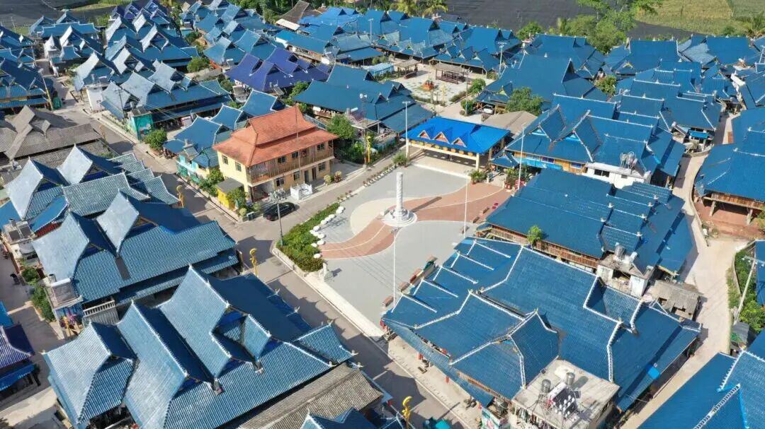 位于云南省最南端的勐腊县磨憨镇尚冈村,是磨憨镇最大的傣族村寨。早年间,由于经济条件有限,危旧房屋的修缮和拆建难题长期困扰当地群众。2022年5月,昆明市托管磨憨镇,相距700公里的省会与边境小镇紧紧相连。在“以城带边、以城兴边”的帮带共建机制下,今天的尚冈村,覆盖深蓝色琉璃瓦的吊脚楼有序排列,村容村貌已焕然一新。