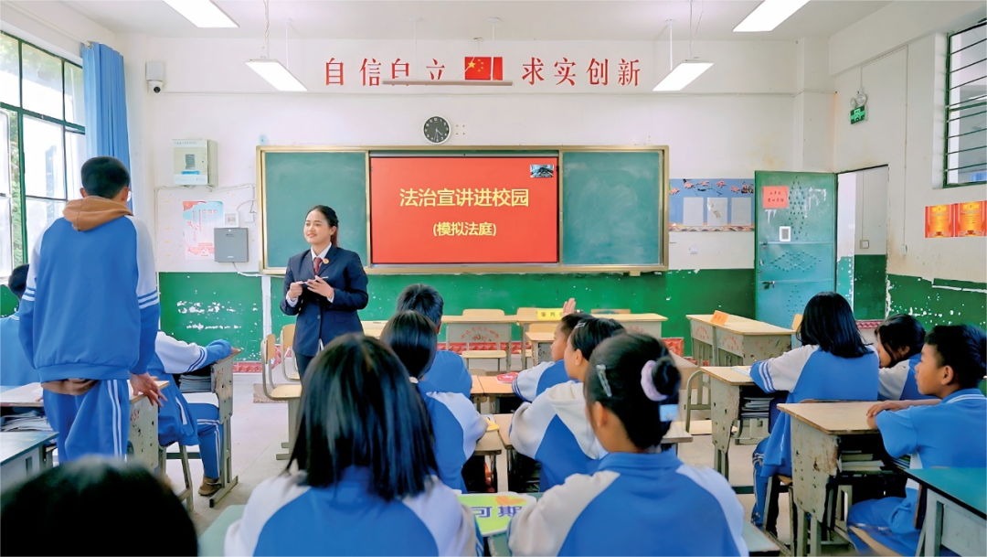 沧源佤族自治县人民检察院“阿佤理”未检团队到勐来乡九年一贯制中心校开展“模拟法庭”进校园活动 杨瑞琦/摄