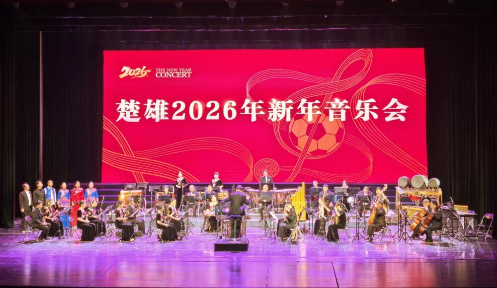 当天晚上,楚雄2026年新年音乐会在楚雄大剧院华美奏响。楚雄州民族艺术剧院的艺术家们倾情演绎,为观众带来一场融合竞技魅力与文化底蕴的新春盛典。