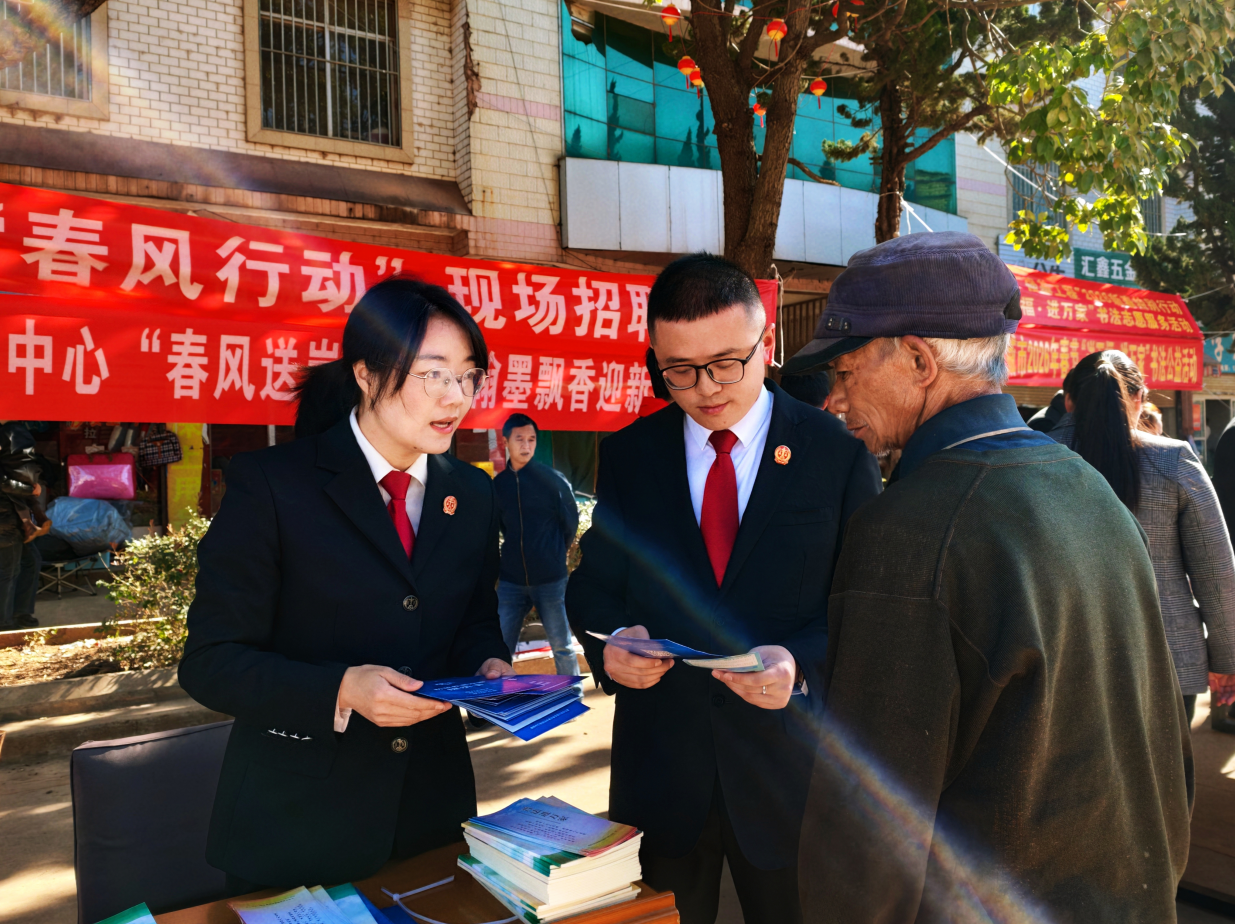 春节长假第一天,宣威市热水镇集市比往常更加热闹。宣威市人民法院热水法庭法官和干警带着精心准备的“法治年货”走进基层一线,将法律知识送到群众家门口。