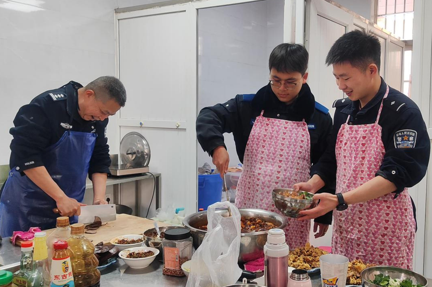 过年啦,过年啦,当玉溪市江川区大街小巷响起鞭炮声时,当家家户户团圆共享团聚温情时,对于公安民警来说,他们依旧坚守在岗位上。他们的年夜饭,也是满满的“平安”味道。