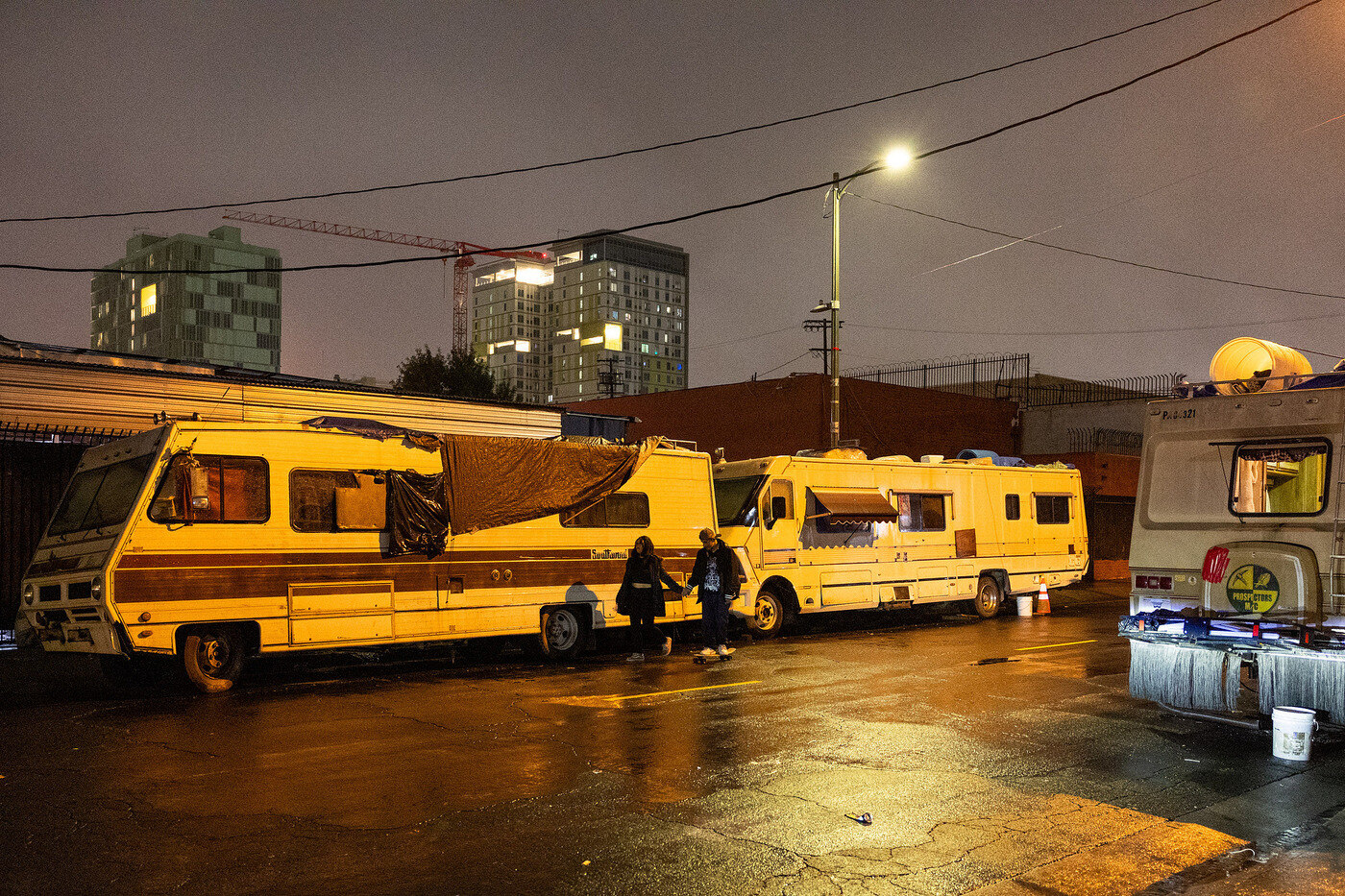 △当地时间1月3日,美国加州洛杉矶,无家可归者的房车